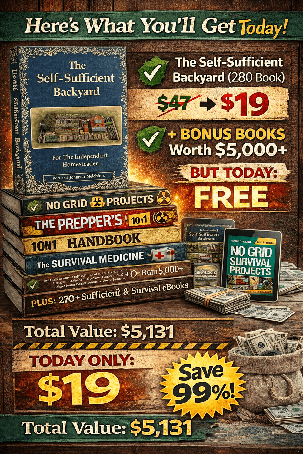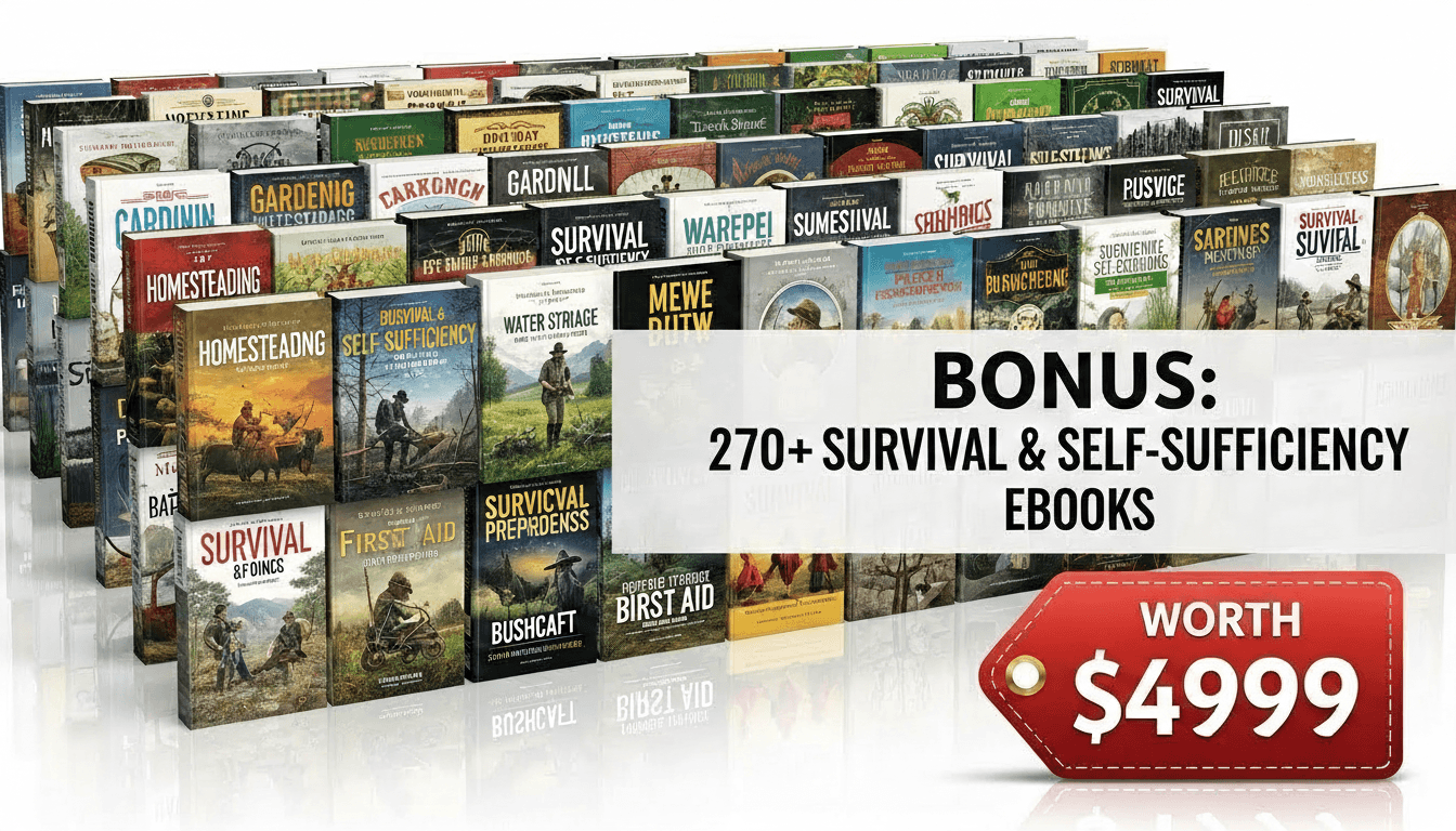 You’ll also get the Ultimate Mega Bonus — a massive library of 270+ eBooks focused on self-sufficiency, survival, and off-grid living.